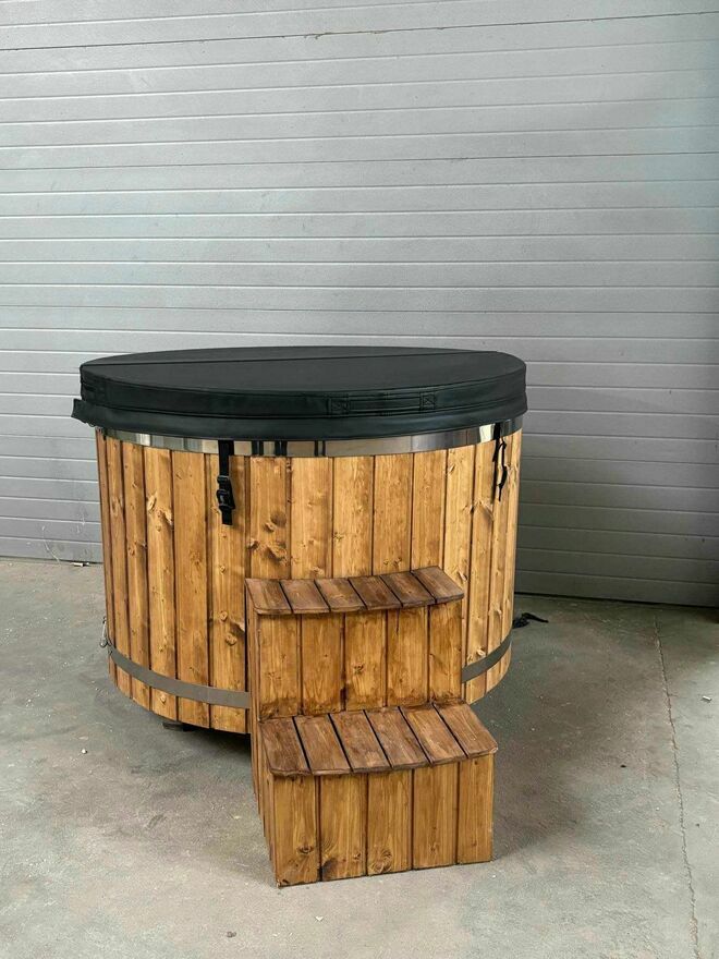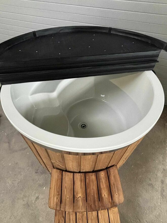 Beczka do morsowania o średnicy 140cm ze świerku skandynawskiego z wkładem z tworzywa – szczelna, higieniczna i trwała. Wzmocniona 2 obejmami, z pokrywą termiczną w zestawie. Idealna do domowego morsowania przez cały rok! ????️Tel.